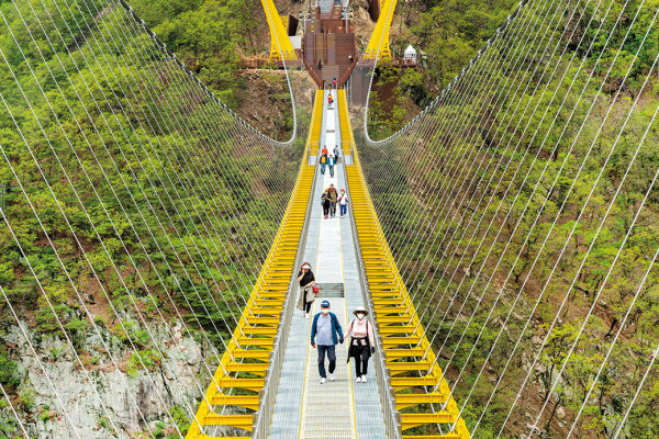 소금산 그랜드밸리를 찾은 관광객들이 케이블카를 통해 스릴과 재미를 느끼고, 소금산 출렁다리, 하늘정원, 소금잔도, 스카이타워, 울렁다리, 피톤치드 글램핑장, 음악분수 등 다양한 시설들을 함께 이용하며 간현관광지의 즐거움을 만끽할 수 있을 것입니다.