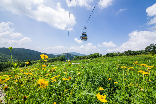 하늘 아래 가까이, 경이로운 자연을 마주하는 방법 하이원탑으로 가는 멋진 곤돌라, '하이원 운탄고도 케이블카 마운틴' 봄이면 슬로프를 가득 채운 야생화를, 겨울이면 한없이 펼쳐진 멋진 설경을 감상 할 수 있는 하이원 운탄고도 케이블카는 하이원을 대표하는 즐길거리 중 하나입니다.